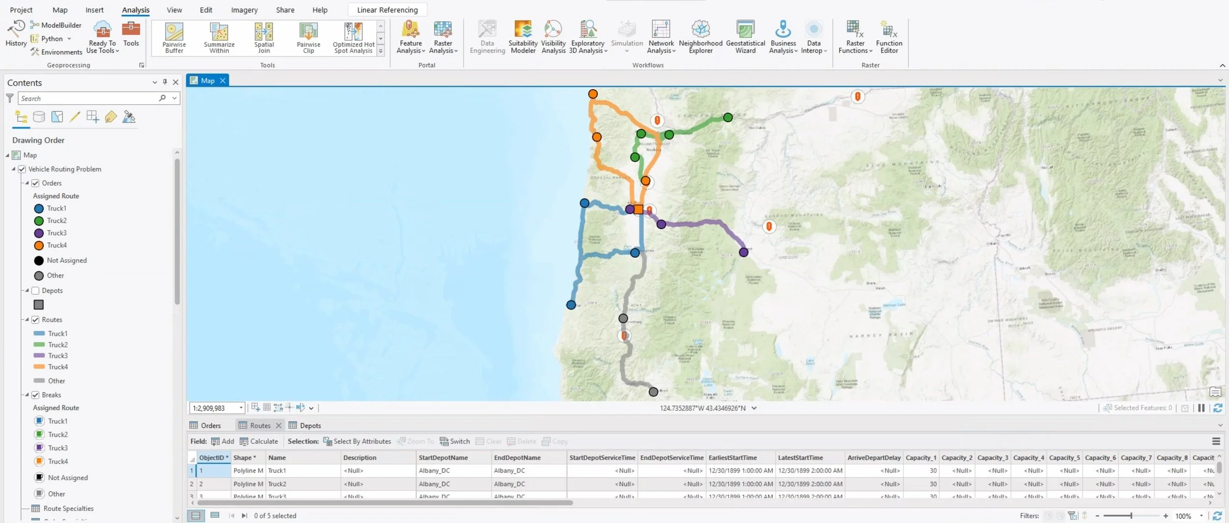 This project focused on optimizing vehicle routing for a regional discount store chain in Oregon, aiming to reduce delivery costs while maintaining service reliability. Using ArcGIS Pro, we analyzed and refined delivery routes from the company’s central distribution center, evaluating strategies such as route consolidation, fleet reduction, and the addition of a second depot.
